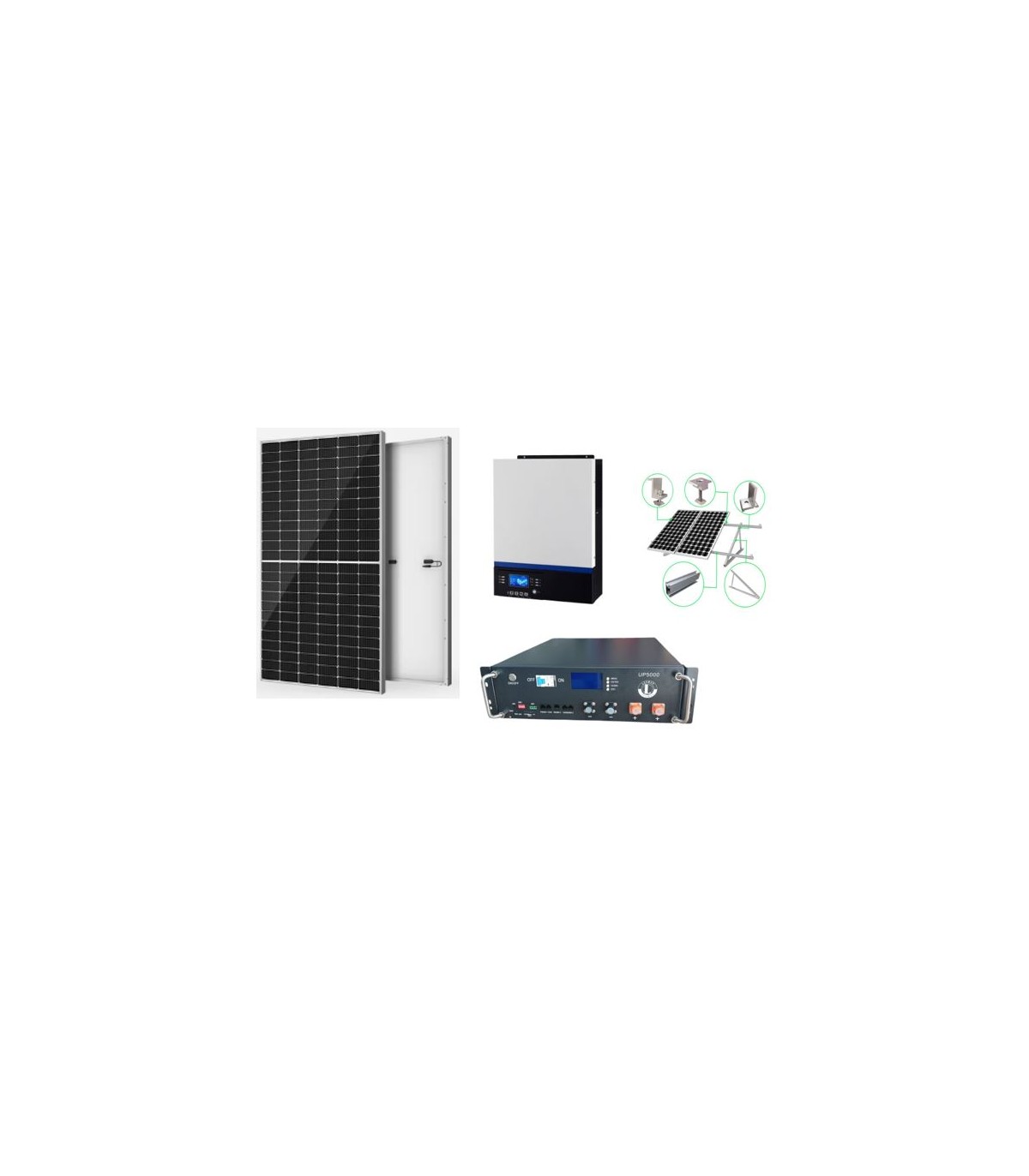 Este sistema es capaz de generar y almacenar energía a partir de sus paneles solares fotovoltaicos. La energía producida se acumula en baterías y es convertida por el inversor a 220V AC para que sea utilizada en cualquier momento las 24 horas del día. El inversor posee un controlador de carga que alarga la vida útil de las baterías y una entrada 220V AC para conectar un generador o la red eléctrica para suplir energía en caso de que sea necesario.
