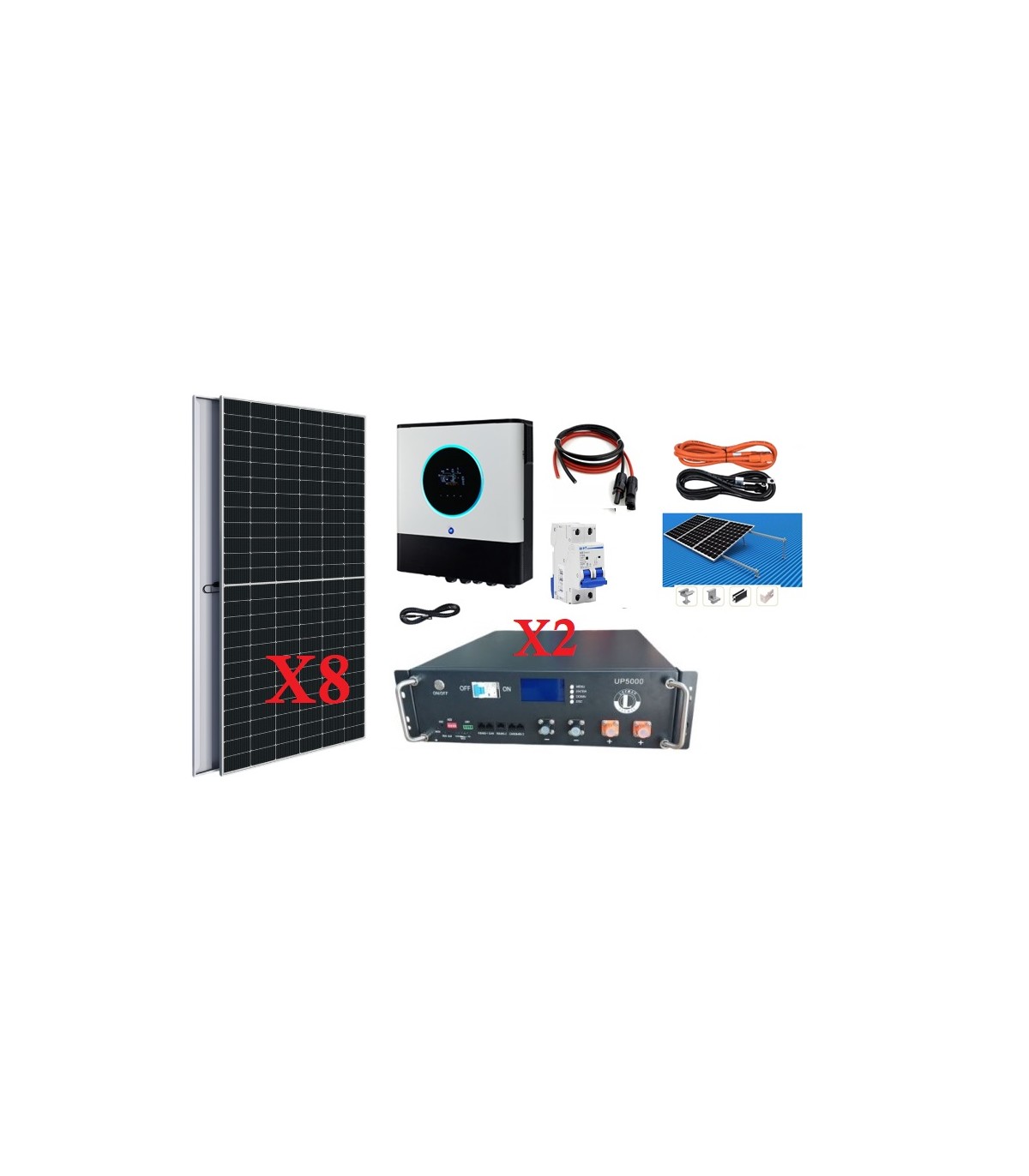 Kit Solar Fotovoltaico Híbrido 10000W en inversor y 4960W en paneles solares para generación eléctrica autónoma.