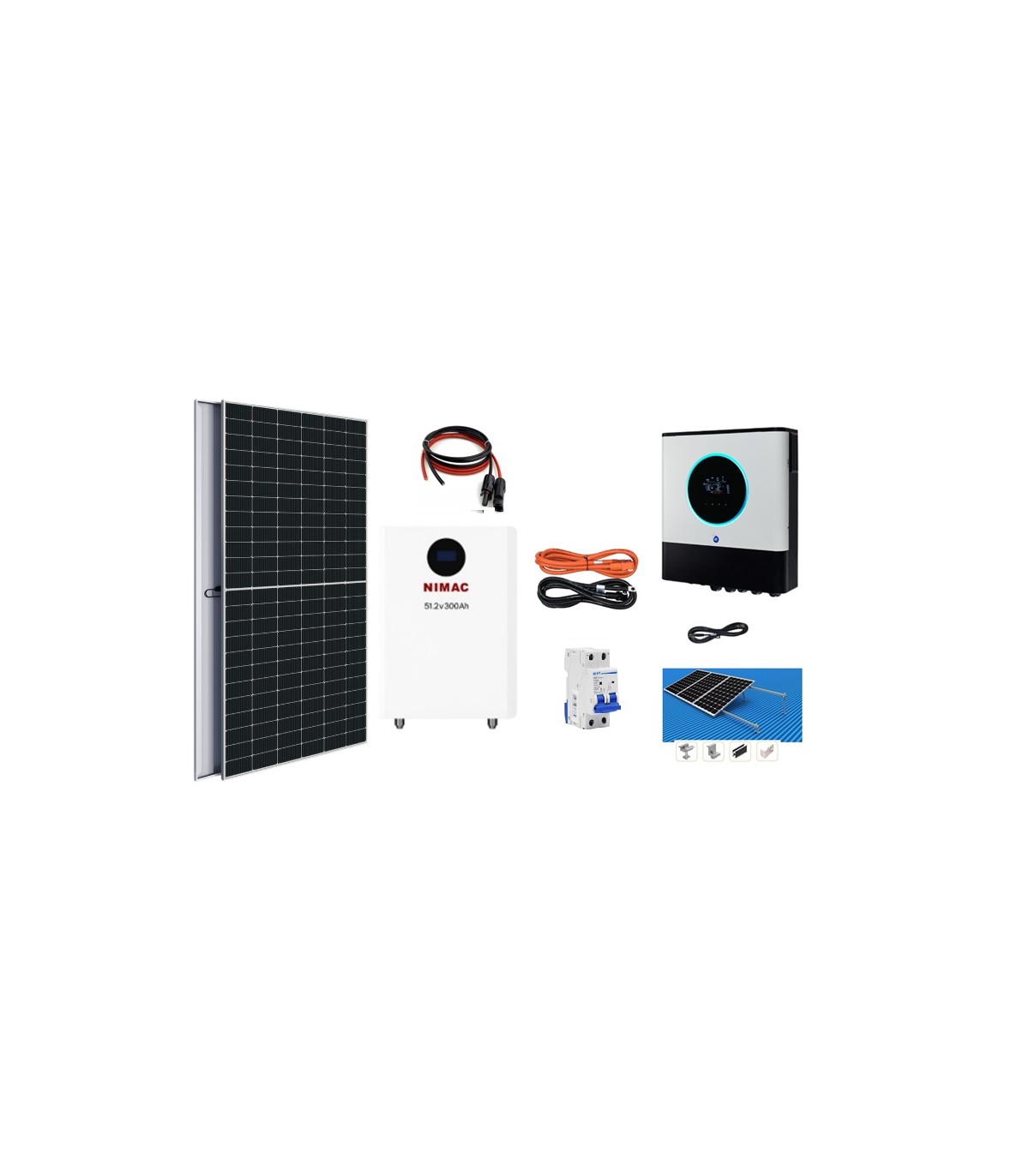 Kit Solar Fotovoltaico Híbrido 10000W en inversor y 9920W en paneles solares para generación eléctrica autónoma.