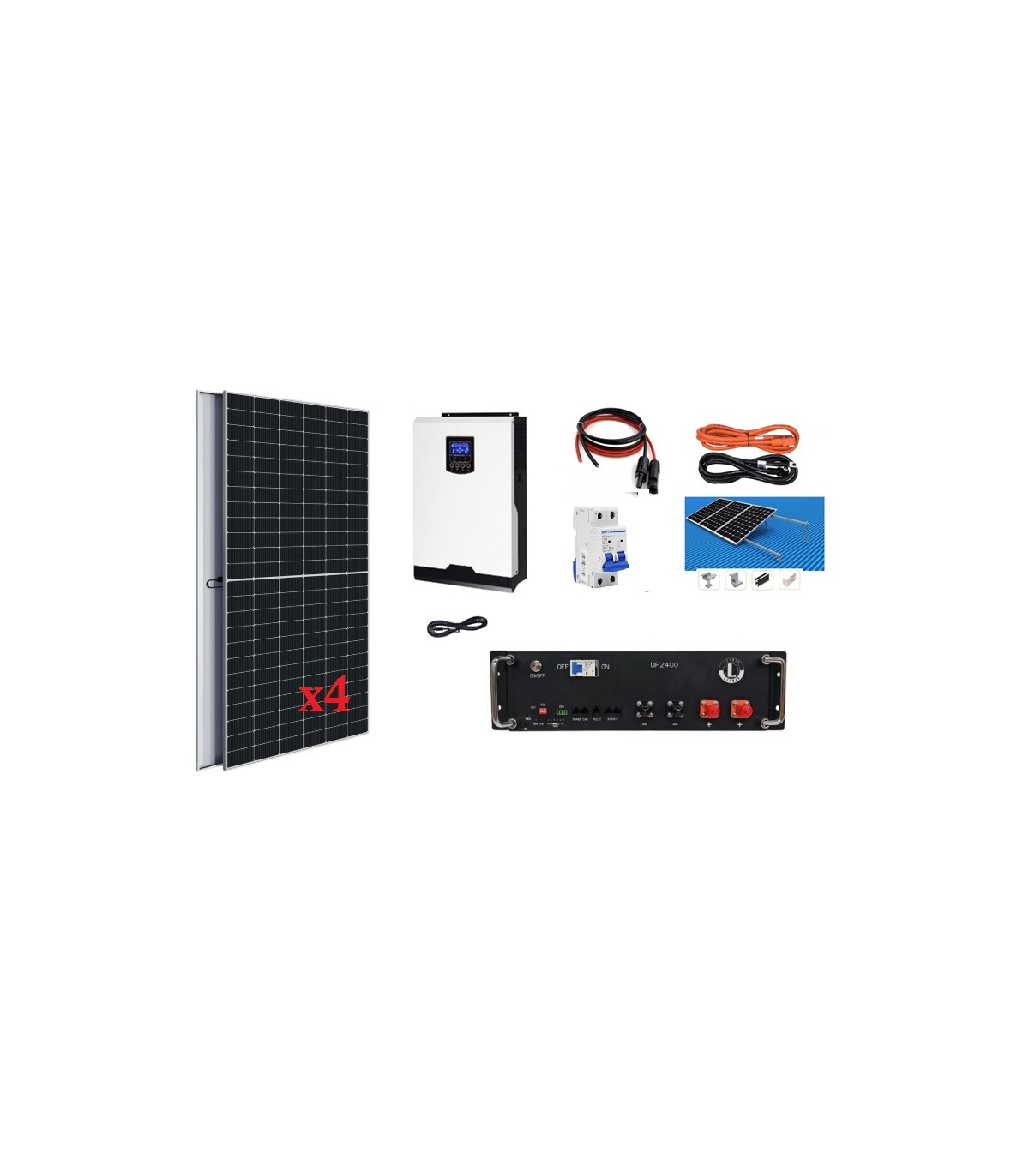 Kit Solar Fotovoltaico Híbrido 4200W en inversor y 2480W en paneles solares para generación eléctrica autónoma.